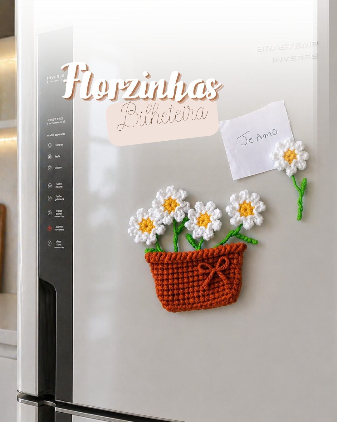 Florzinhas Bilheteira em crochê, para recadinhos cheios de carinho. Perfeita para presentear ou vender e encantar. Essa receita tem um passo a passo gratuito no meu perfil. Mas caso goste em PDF coloquei esse valor simbólico para você adquirir e me apoiar.